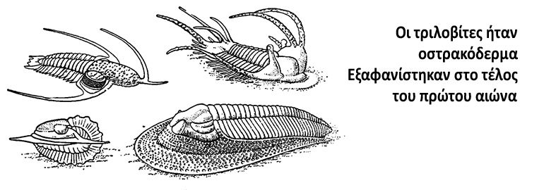 Τα καβούρια, οι γαρίδες και οι αστακοί είναι συνηθισμένα ζώα των ακτών. Τα ζώα αυτά είναι στενοί συγγενείς και ονομάζονται οστρακόδερμα. Τα οστρακόδερμα είναι μια ομοταξία στη συνομοταξία των ζώων, που τα πόδια τους έχουν αρθρώσεις, των αρθρωτών. Οι τριλοβίτες, τόσο άφθονοι πριν από εκατοντάδες εκατομμύρια χρόνια, που εξαφανίστηκαν στο τέλος του πρώτου αιώνα, ήταν οστρακόδερμα.
